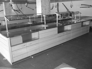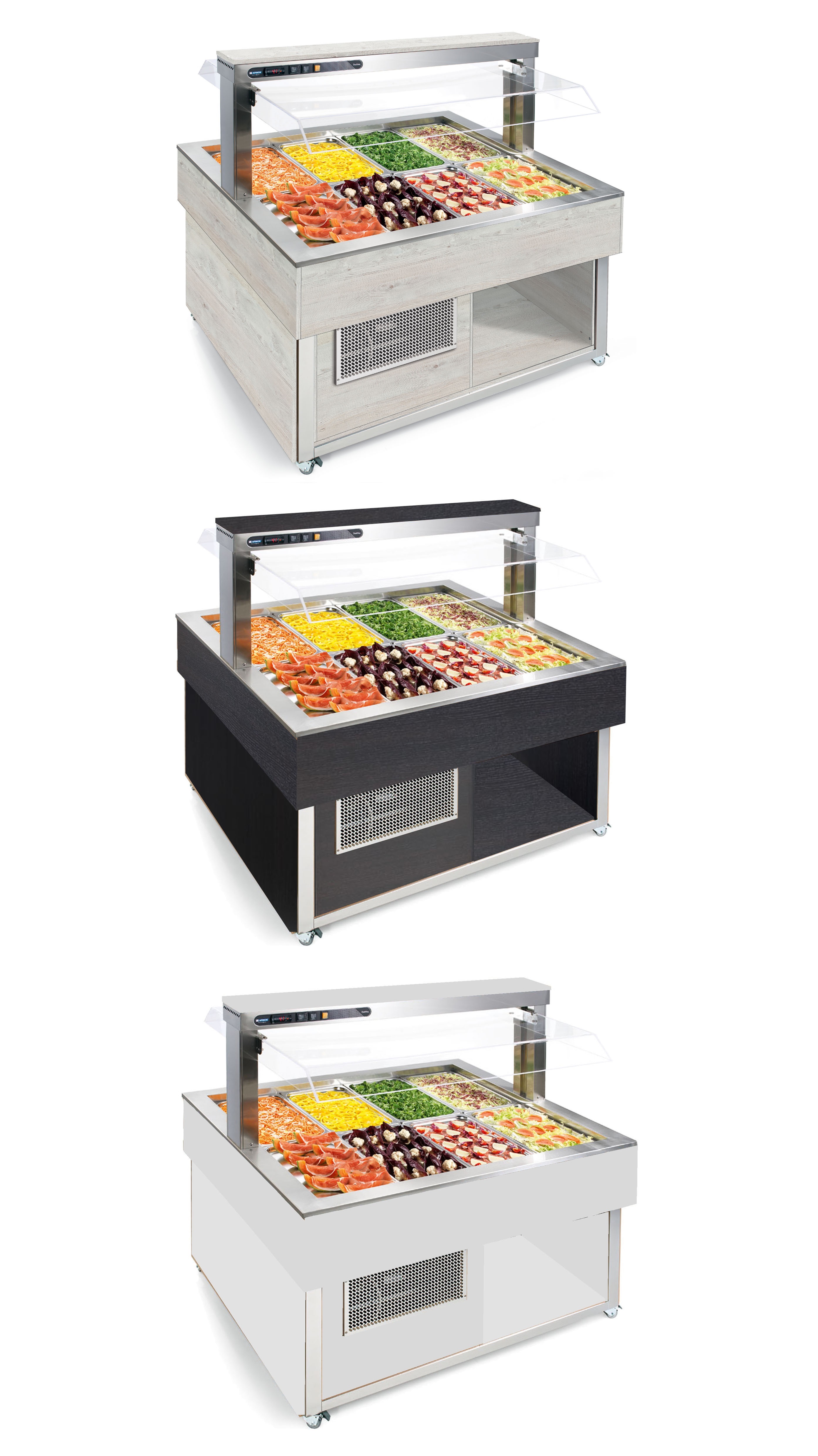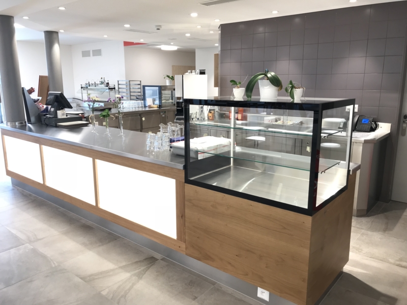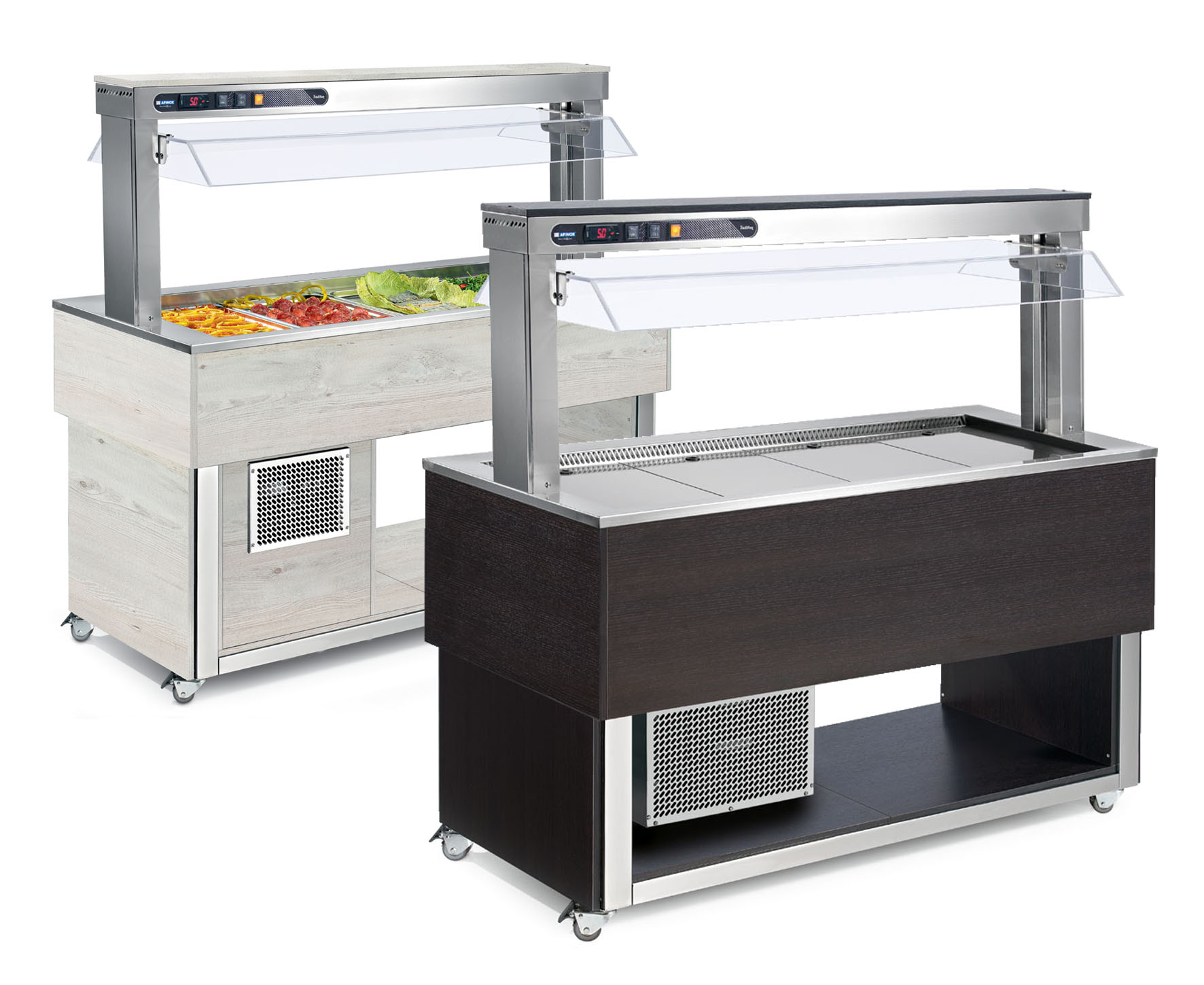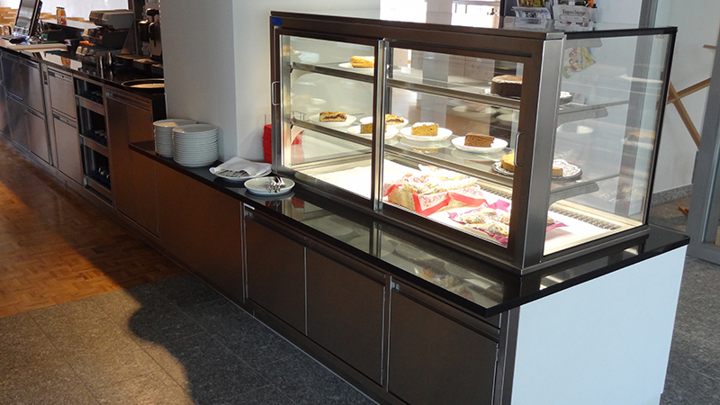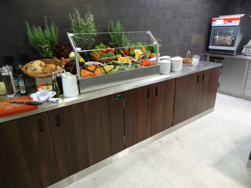 Buffet fest eingebaut mit zentrale Kühlung und Holzverkleidung oder pulverbeschichteter Chromstahl.