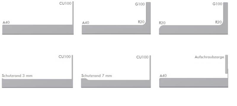 - Alle Rundungen 20 mm oder größer
