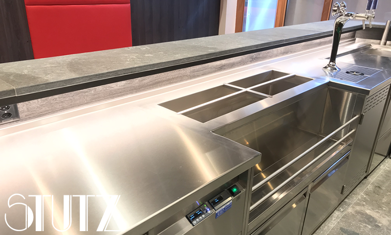 STUTZ Grossküchen AG plant Ihren neue Bar, auf Ihre Bedürfnisse abgestimmt, definiert auf Wunsch die Materialien neben den Chromstahlmöbel, montiert diese selbständig und bietet einen eigenen Service mit allen Ersatzteilen vor Ort und das 24/7.