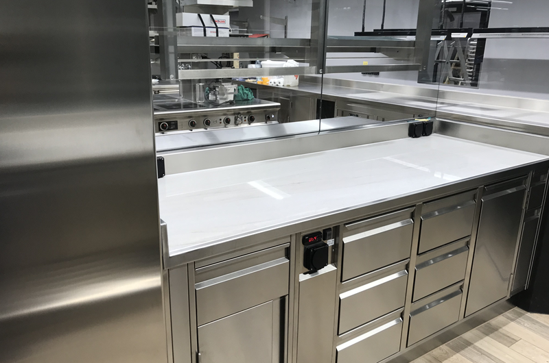 Wir planen und herstellen Arbeitsposten vom Patissier und Gardemanger auf Ihren Betrieb abgestimmt mit Kühltischen und Küchen-Geräte am richtigen Ort. Dazu alles sauber und hygienisch in 5-Sterne-Qualität montiert.
