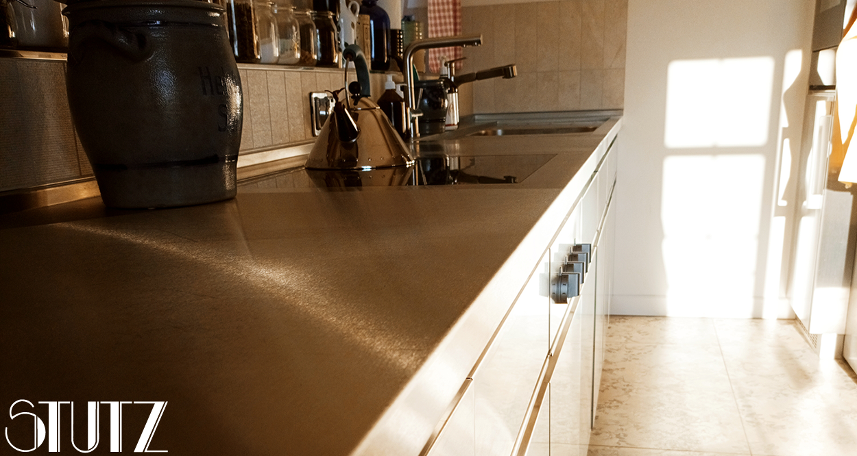Elegante Edelstahlküche mit Pulverbeschichtung im Champagner-Look