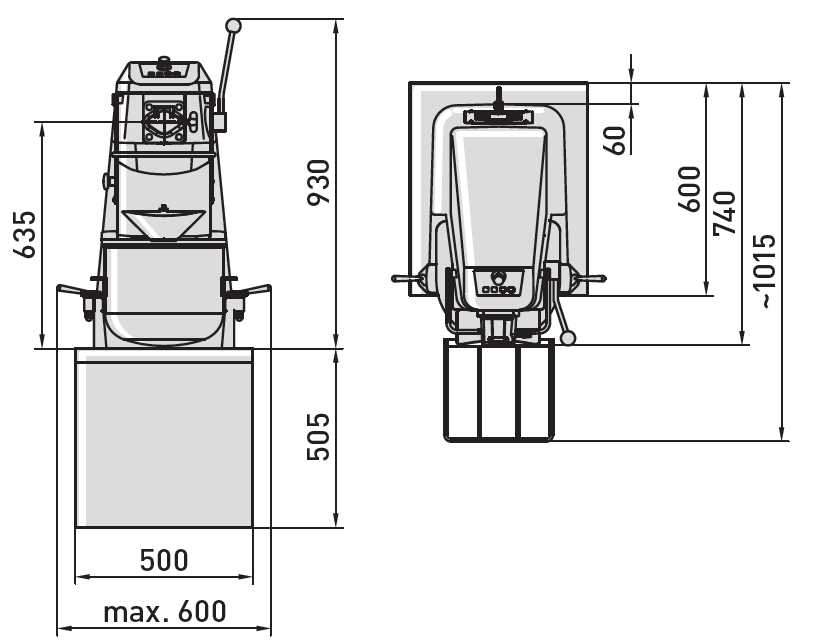 | Aussenmasse B x L x H / Deckel geöffnet mm | 520 x 600 x 380 / 630 |