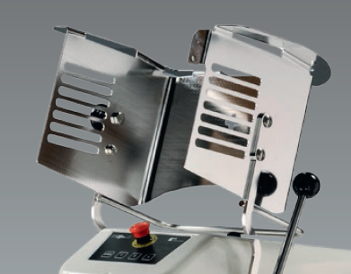 - Schleifvorrichtung, Messerschutz, Abstreifblech und Produktauflageplatte sind für eine gründliche Reinigung abnehmbar