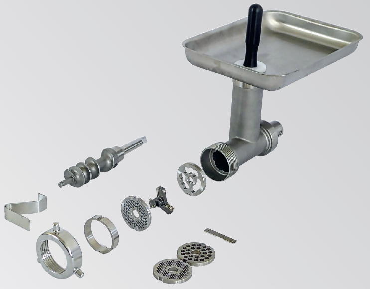 Eine perfekte Hygiene erreicht jetzt jeder: weil alle Teile mit Lebensmittelkontakt in die Spülmaschine können und sollen. Da Aluminium- oder Kunststoffteile nur beschränkt spülmaschninenfest sind und die Oberflächen rasch gefährliche Poren aufweisen, wurden solche Werkstoffe beim neusten Rotor-Gemüseschneider vermieden. Bei dieser Maschine ist wirklich das ganze Gehäuse aus rostfreiem Edelstahl gefertigt, ebenso der Deckel, die leicht entfernbare Schneidekammer, alle Schneidscheiben und die Würfelgitter. Diese Teile können daher auch mit starken Desinfektionsmitteln gereinigt werden.