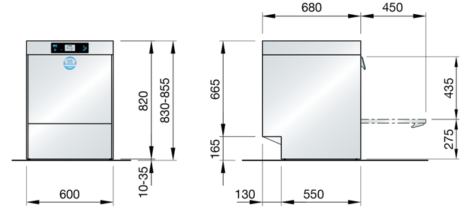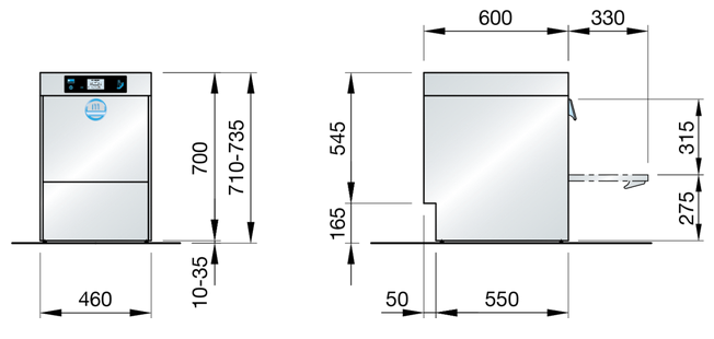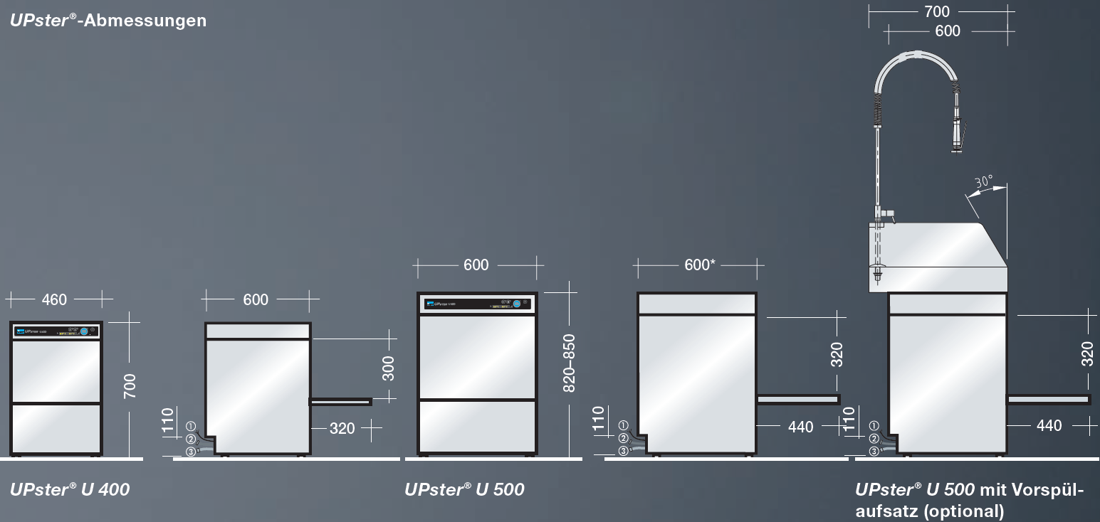 Gewerbespülmaschine UPster® U: effiziente Waschleistung, komfortable Bedienung, höchste Flexibilität und optimales Preis-Leistungs-Verhältnis. Mit intuitivem Display und digitalen Anzeigen. Hochwertiges Material und ein sparsamer Waschtank mit 11 Litern, Doppelwandig isoliert für optimale Wärmedämmung und minimalen Energieverbrauch.