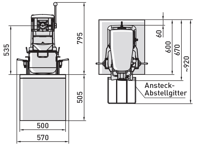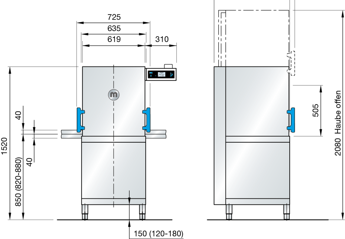 | Aussenmasse B x L x H / Deckel geöffnet mm | 760 x 660 x 1010 / 1300 |