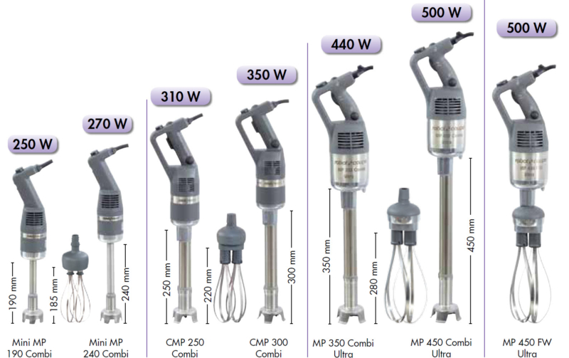 - Mini MP 350-450: Mixer: 1500 bis 9000 U/min Rührbesen: 250bis 1500 U/min
