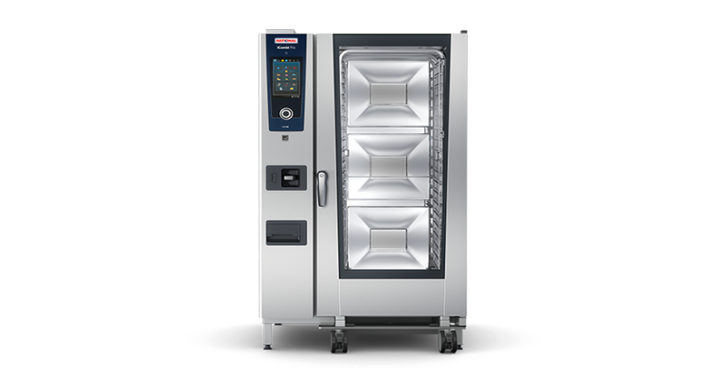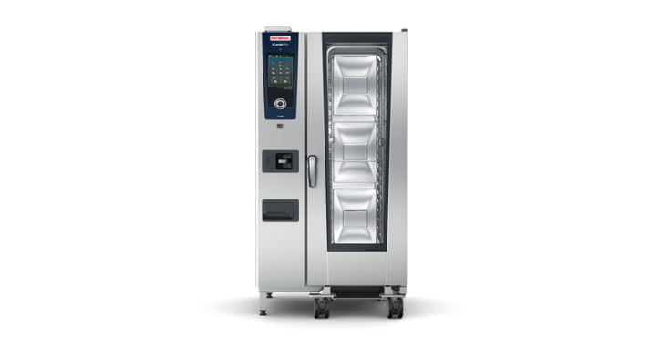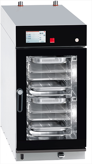 Der Cucina Easy mit der halbautomatik Steuerung mit allen wichtigen Funktionen sowie der Möglichkeit, eigene Pro-gramme einzugeben. Die Betriebsarten; Dämpfen bei 30° bis 130°, Heissluft bei 30° bis 300°, Kombidämpfen, NT Garen und Delta Garen. Programmierbar mit bis zu 99 Programmen á 9 Gar-stufen. Der Kern-temperaturfühler misst über vier Punkte von 20°C bis 99°C. In den GN 6×2/3, 6×1/1, 10×1/1 erhältlich