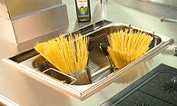 Enorm vielseitiges Gerät – kochen, pochieren, sieden, regenerieren, ziehen lassen und heiss halten. Ideal für Nudeln und Pasta, gefüllte Teigwaren, Knödel, Fisch und Krustentiere, Gemüse, Fleisch und Würste, Fond und vieles mehr.