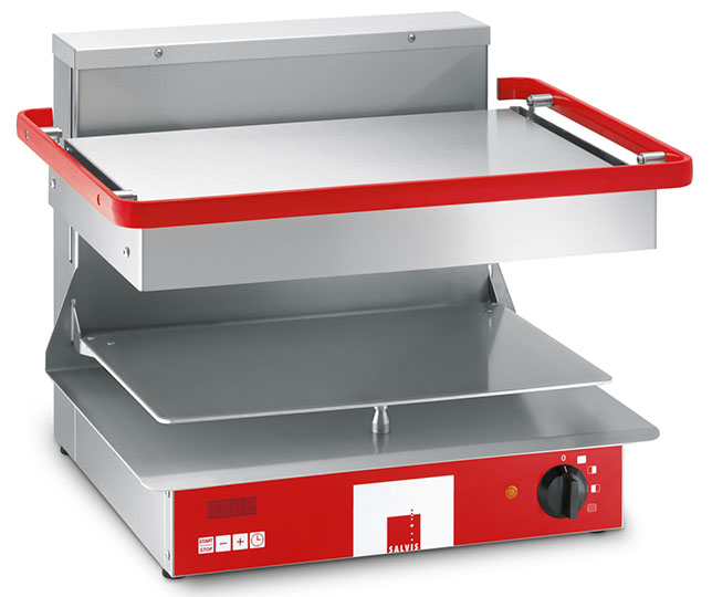 - Flexible Umstellung nach Bedarf von GN 1/1 Längs- auf Quereinschub, Backmass oder Maxi-Blech mit Hilfe des Salvis Standard-Einhängegestells. Beste Auslastung und Ergonomie.