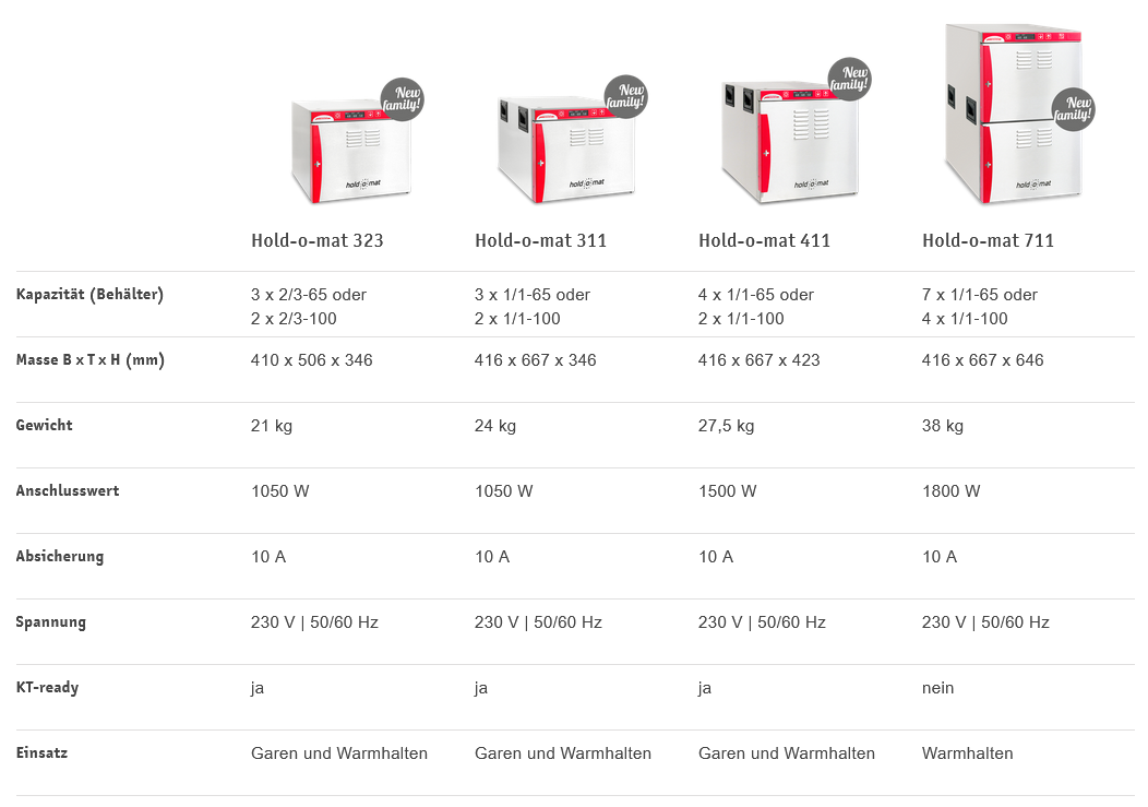 - Sonderprogramme wie: Delta-T-Garen, Cook&Hold, NTGaren, Soft Cooking, Sous-Vide-Garen und Einschubzeiten